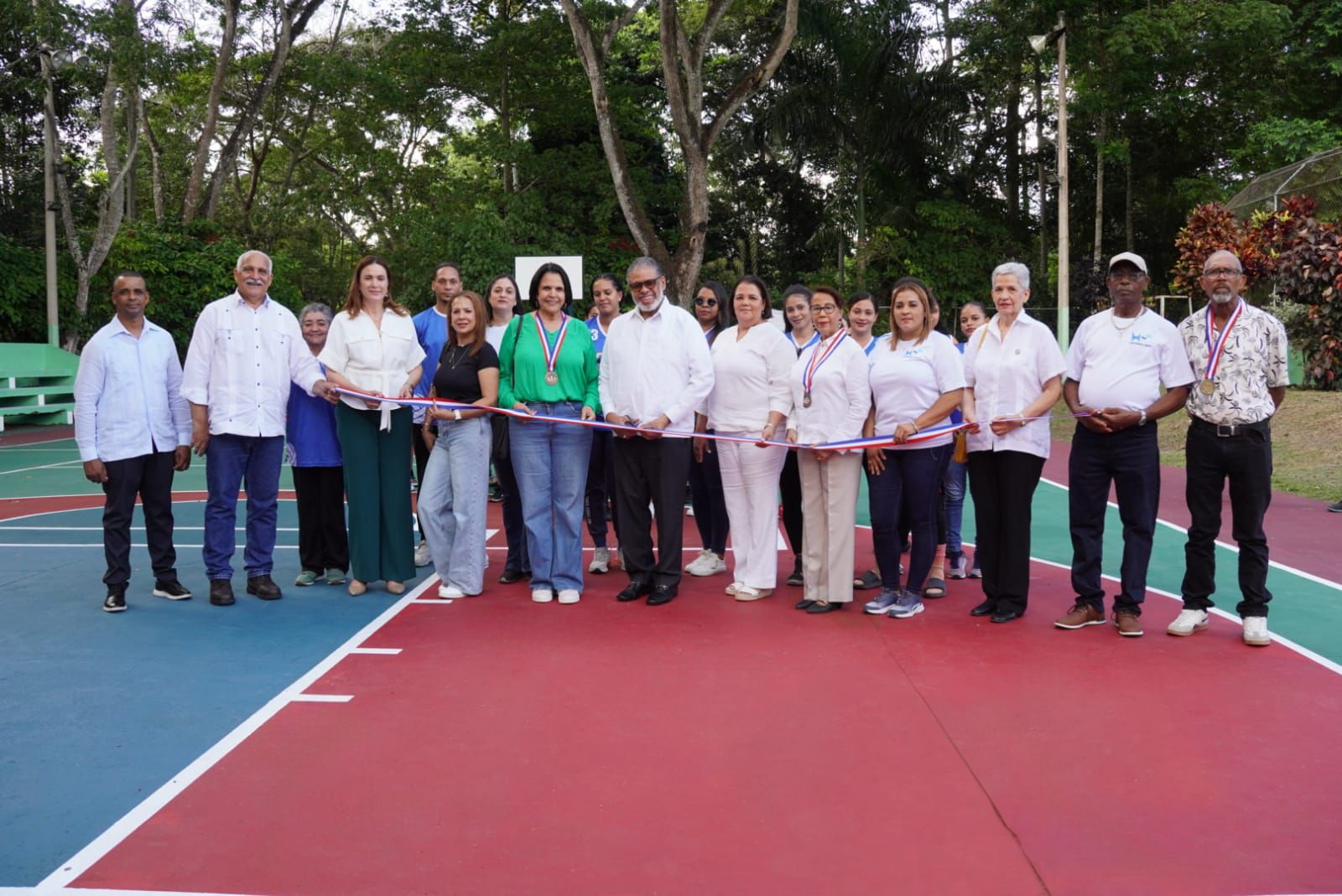 La Dirección General de Desarrollo de la Comunidad (DGDC) entregó remozada la cancha deportiva del Club Cultural y Deportivo Hermanas Mirabal, en Ojo de Agua, del municipio Salcedo.