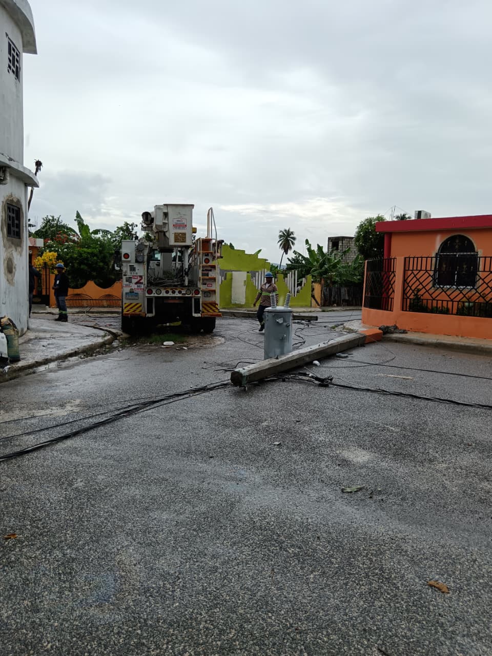 Desde hace varias horas los técnicos, con apoyo de las autoridades municipales, laboran para lograr reanudar el suministro eléctrico en los circuitos VPAN101 de Villarpando y el KQAZ102 del 15 de Azua.