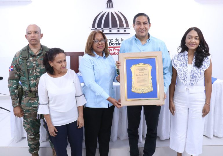 La gobernadora por esta provincia, Rosalba Milagros Peña, entregó una placa de reconocimiento al geopolítico Iván Gatón, tras culminar la presentación del Cómic “Las super maravillas de la Primada de América en esta localidad.