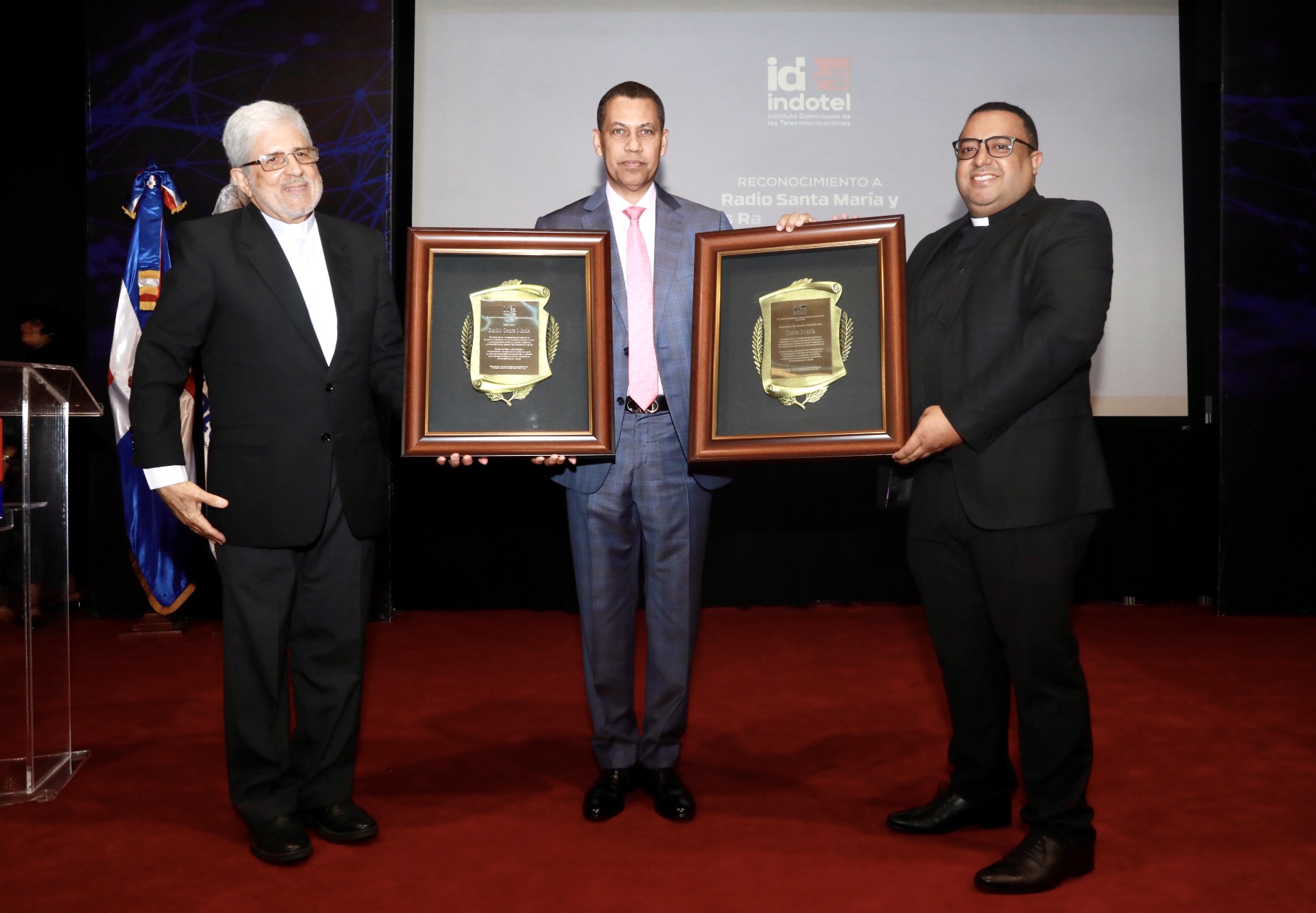 La distinción fue entregada por el presidente del Consejo Directivo del INDOTEL, Guido Gómez Mazara, a los directores de Radio Santa María, reverendo padre Guillermo Perdomo; y de sus Escuelas Radiofónicas Santa María (ERSM), padre Jeovanny Pujols, SJ, en un acto realizado en el Centro INDOTEL, edificio René del Risco Bermúdez, en el marco del Día Nacional del Estudiante.