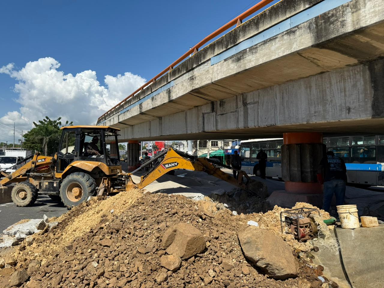 Según explicó la institución, la tubería pasa por debajo de una de las pilas estructurales del elevado, lo que ha dificultado las labores de excavación y reparación. Los técnicos están trabajando en descubrir el tramo afectado para identificar el material de la tubería y así realizar un desvío que permita restablecer el suministro de agua potable en la zona.