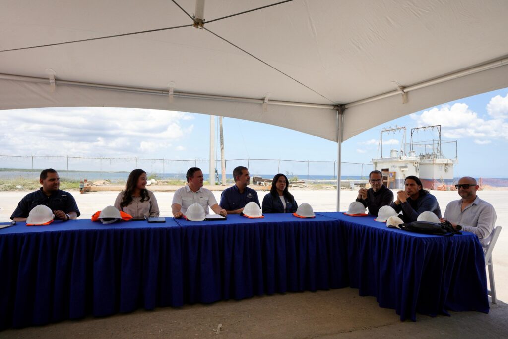 Autoridades del Ministerio de Economía Planificación y Desarrollo (Mepyd), junto con miembros del Ministerio de Obras Públicas y Comunicaciones (MOPC) y la Autoridad Portuaria Dominicana (Apordom), encabezada por su director ejecutivo, Jean Luis Rodríguez, mostraron el desarrollo de la construcción del puerto de Manzanillo a periodistas locales y extranjeros.