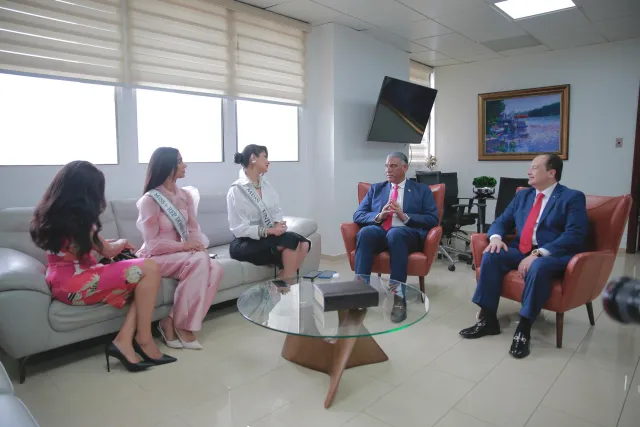 Miss Universo 2023 Chenice Palacios y Miss República Dominicana 2024 Ceriny Santos Frías visitan al Ministro del Interior y Policía Jesús (Chu) Vázquez Martínez sobre temas relacionados con el combate al crimen y la violencia en el país Conversamos.