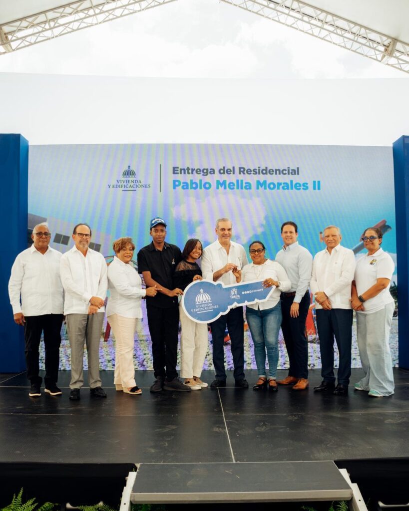 Santo Domingo. – El presidente de la República, Luis Abinader, junto al ministro de Vivienda y Edificaciones (MIVED), Carlos Bonilla, encabezó este jueves la entrega de 95 nuevos apartamentos en el Residencial Pablo Mella Morales II en Pedro Brand, del municipio Santo Domingo Oeste.