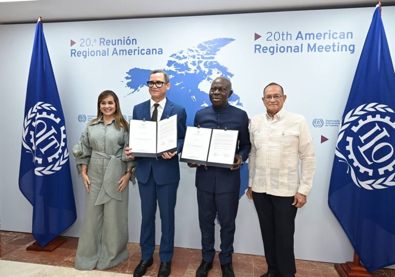 En el marco de la 20ª Reunión Regional Americana de la Organización Internacional del Trabajo (OIT), celebrada en Punta Cana, el ministro de Trabajo de la República Dominicana, Eddy Olivares, entregó en nombre del Gobierno dominicano, al director general del organismo, Gilbert Houngbo, el instrumento de ratificación del Convenio 156 de la OIT, sobre los trabajadores con responsabilidades familiares.