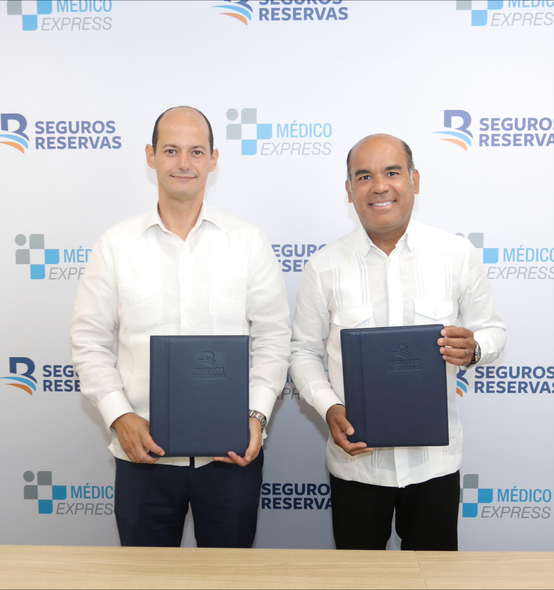 El acuerdo fue rubricado por Víctor Rojas, Vicepresidente Ejecutivo de Seguros Reservas y el Dr. Alejandro Cambiaso, Presidente Ejecutivo del Centro Médico Express San Isidro.
